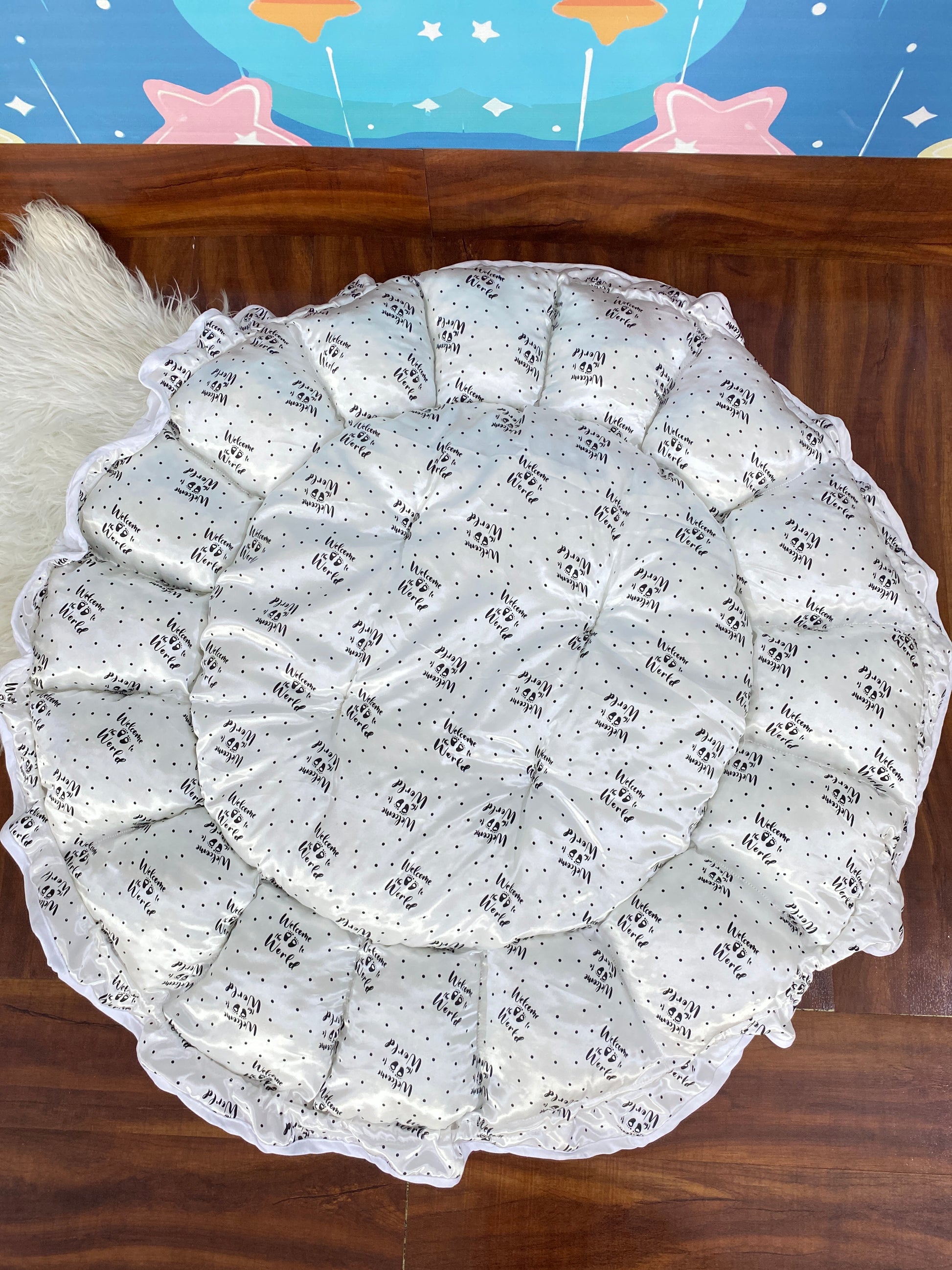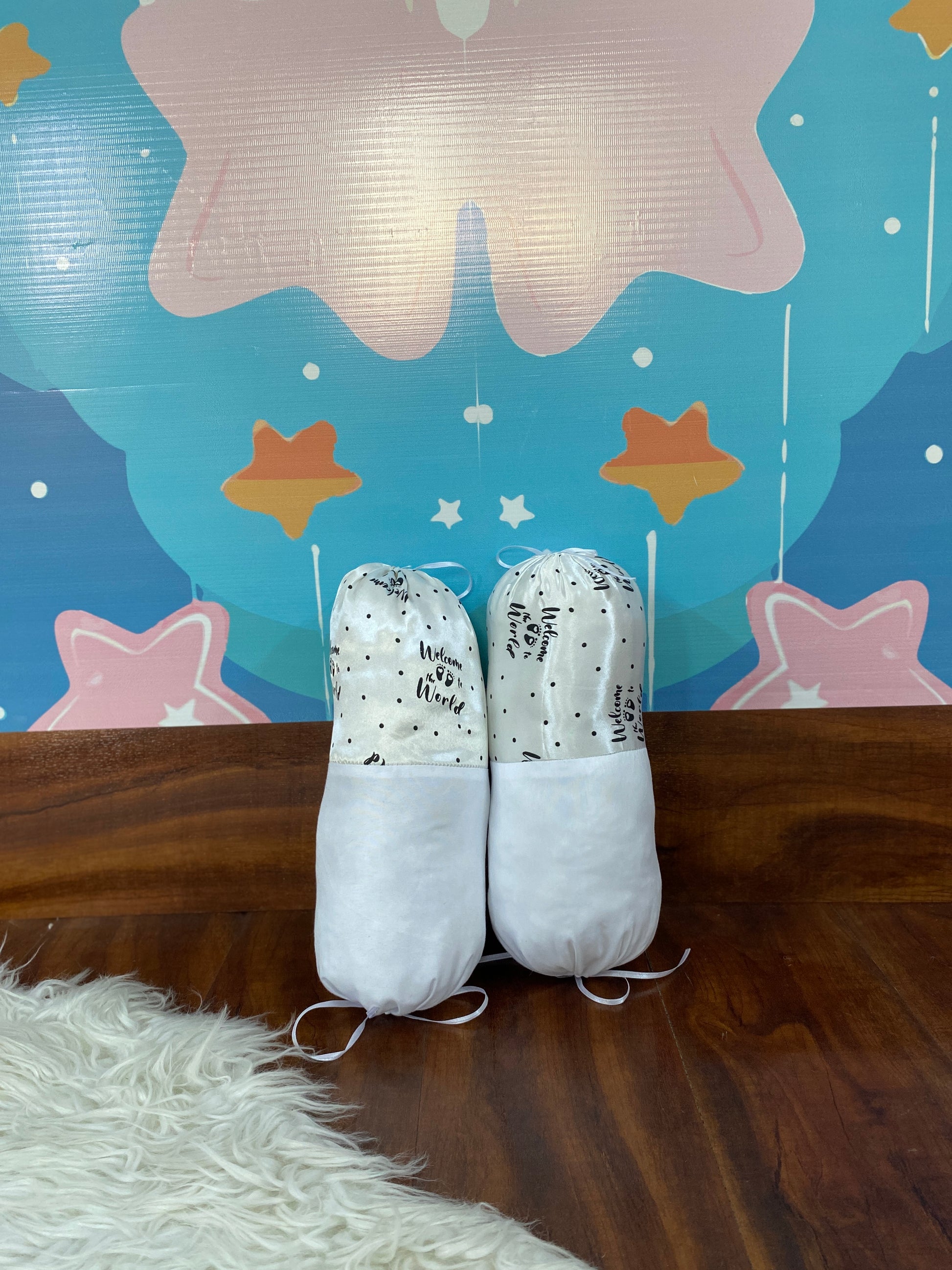 12 Pieces Silk Bed Set”Welcome to the world “ White & Black”