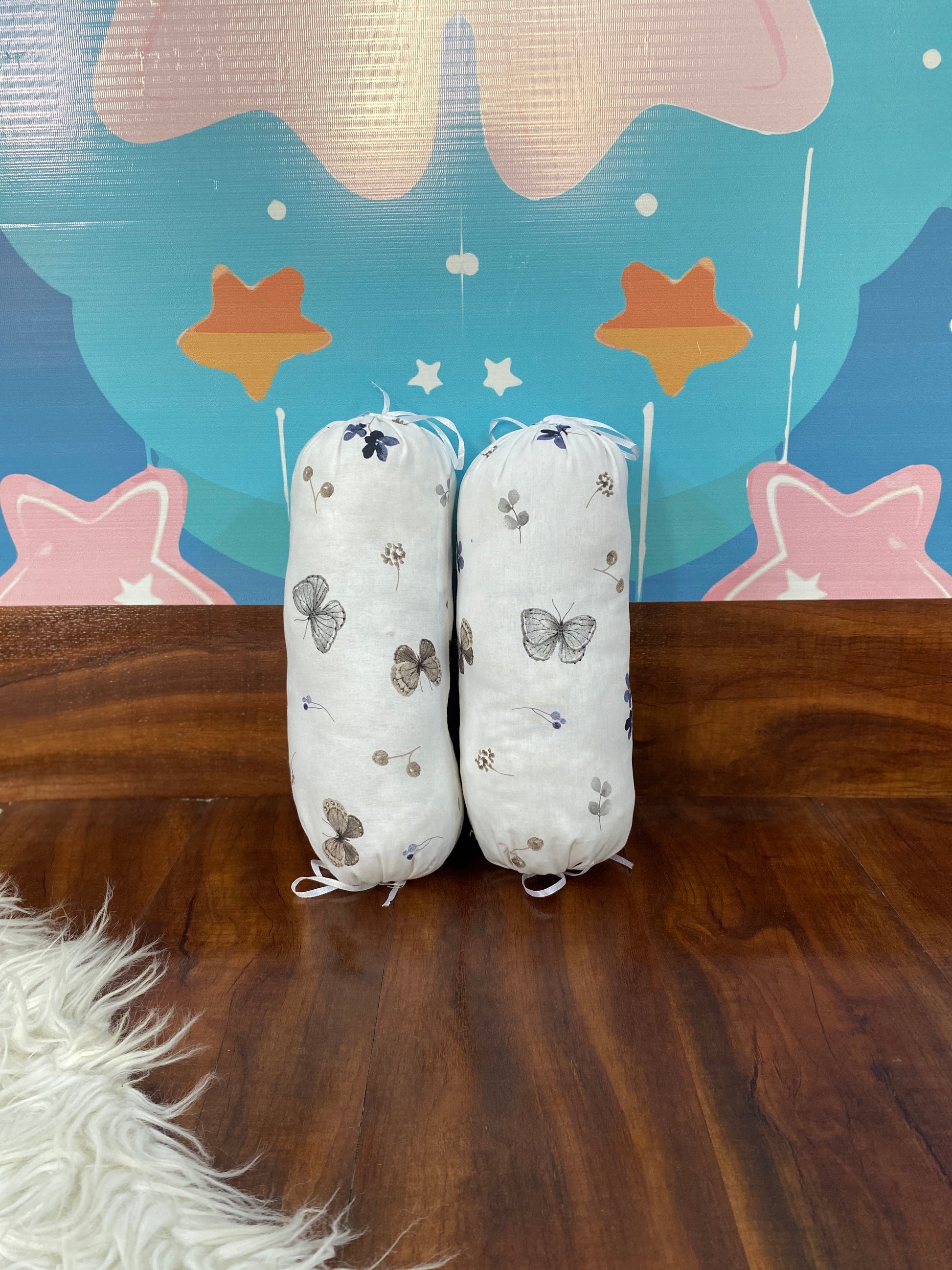 8 Pieces Bedding Set - Grey and white Butterflies