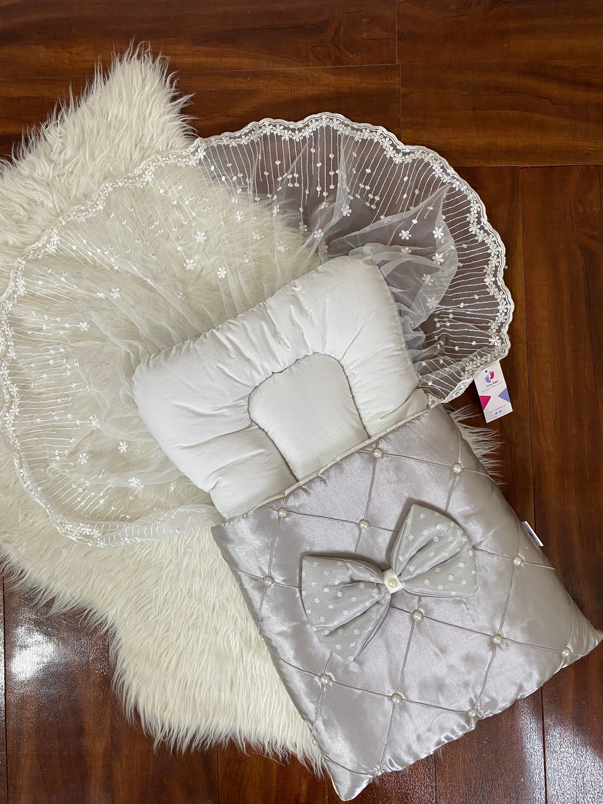 Cuddle your baby in pure luxury! Cotton inside for comfort, silk outside for shine, and a delicate net for that extra touch of charm